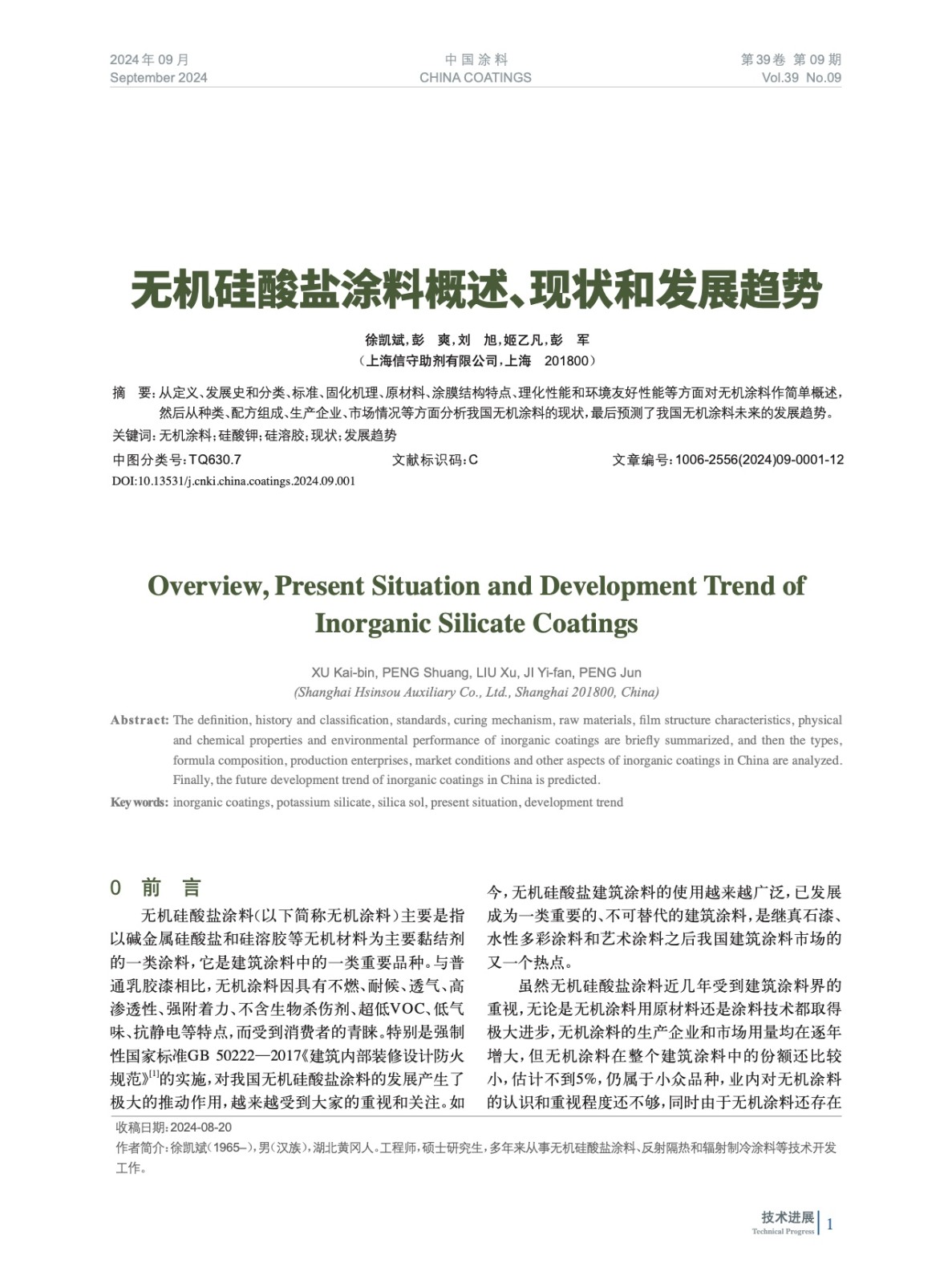 無機硅酸鹽涂料概述、現狀和發展趨勢