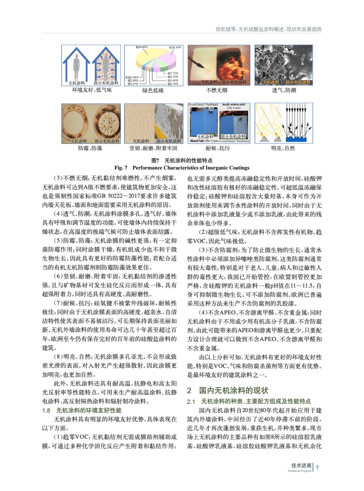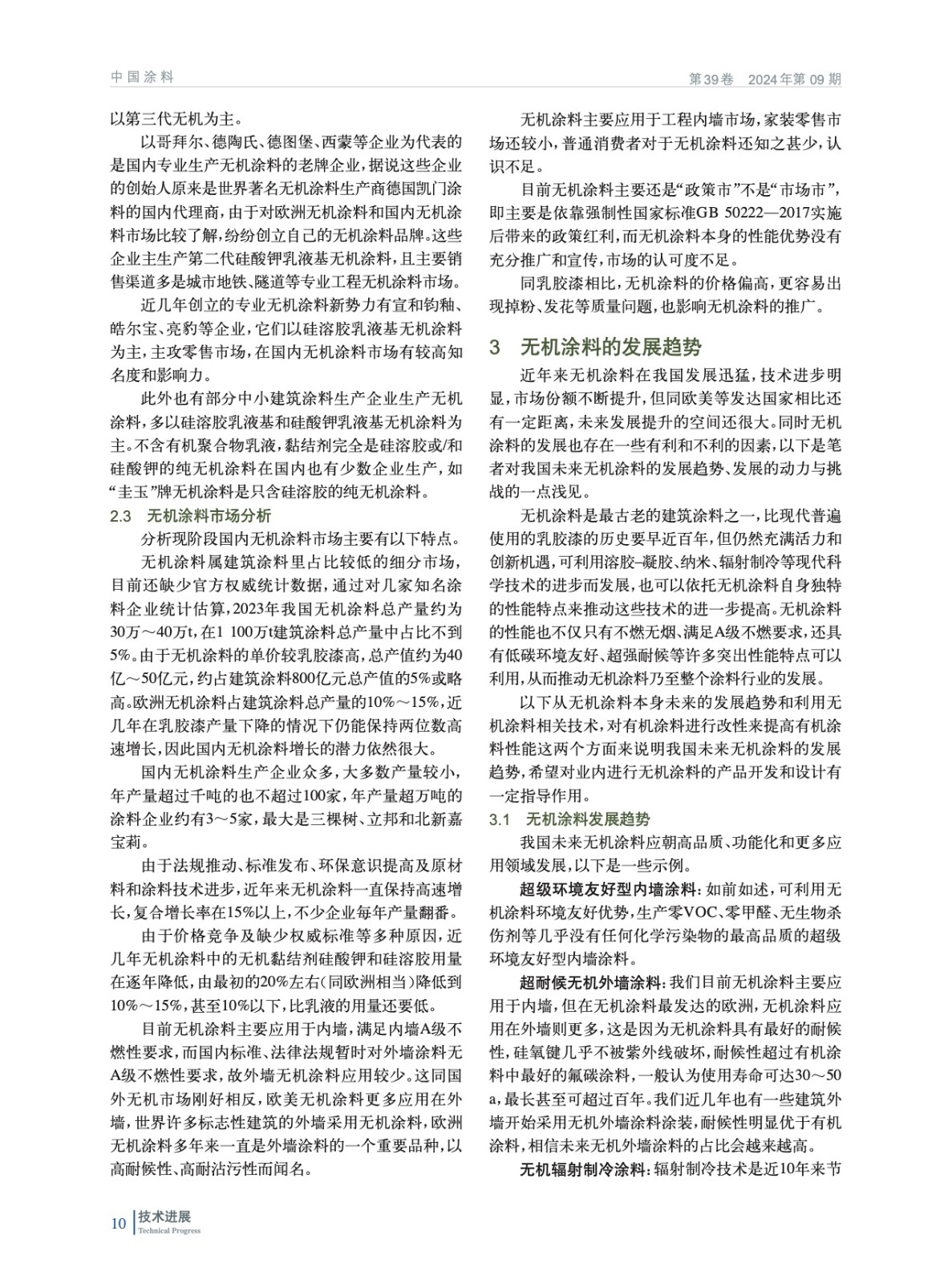從定義、發展史和分類、標準、固化機理、原材料、涂膜結構特點、理化性能和環境友好性能等方面對無機涂料作簡單概述,然后從種類、配方組成、生產企業、市場情況等方面分析我國無機涂料的現狀,最后預測了我國無機涂料未來的發展趨勢。