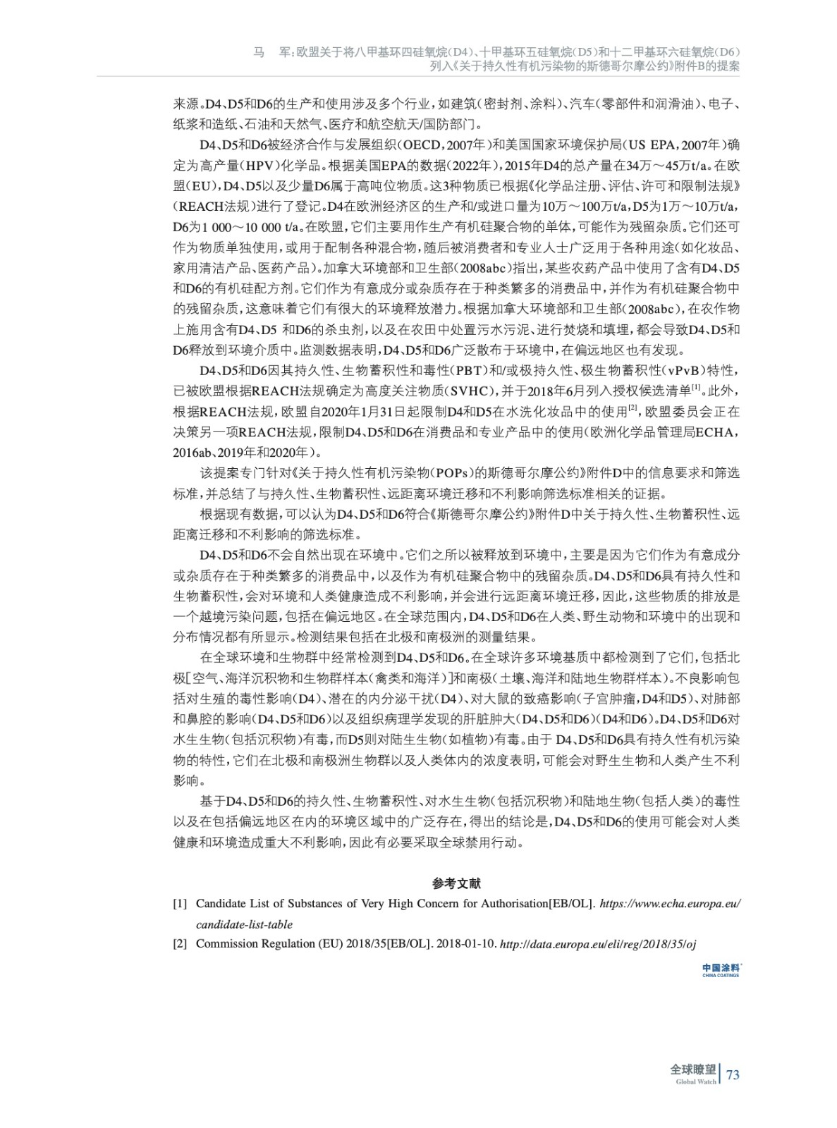 歐盟關于將八甲基環四硅氧烷(D4)、十甲基環五硅氧烷(D5)和十二甲基環六硅氧烷(D6)列入《關于持久性有機污染物的斯德哥爾摩公約》附件B的提案