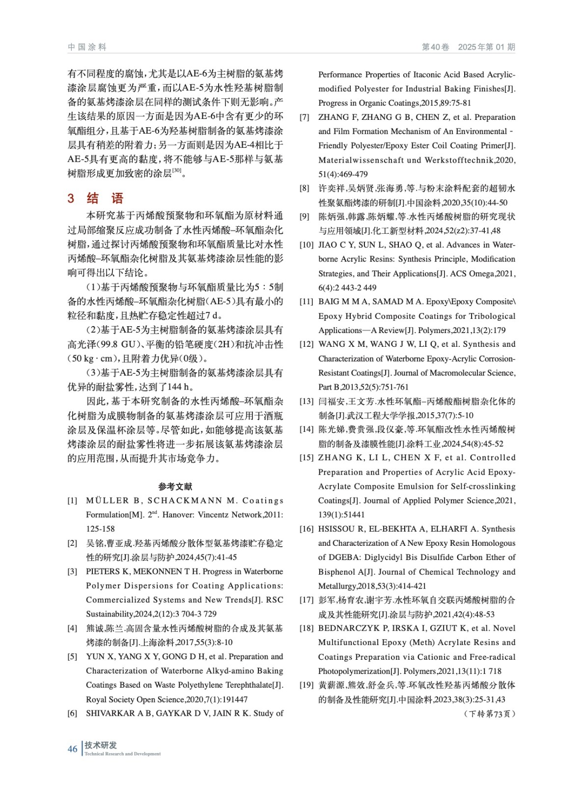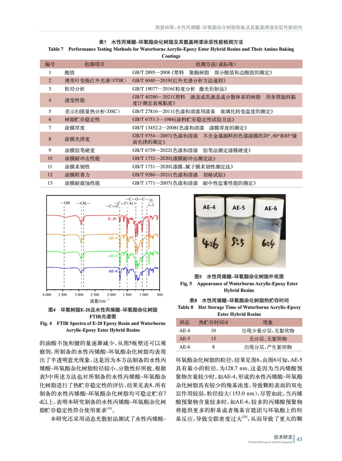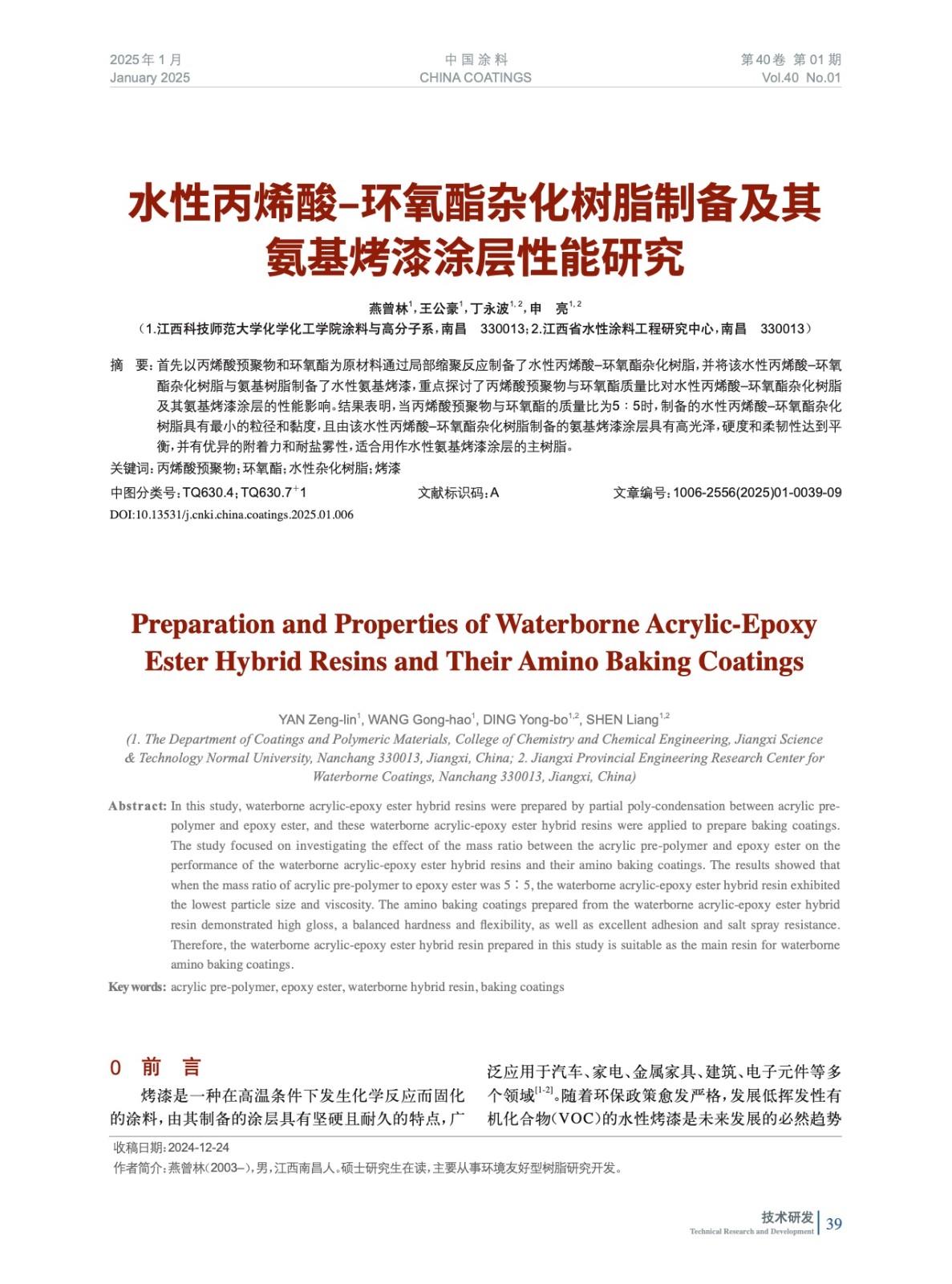 水性丙烯酸–環氧酯雜化樹脂制備及其氨基烤漆涂層性能研究