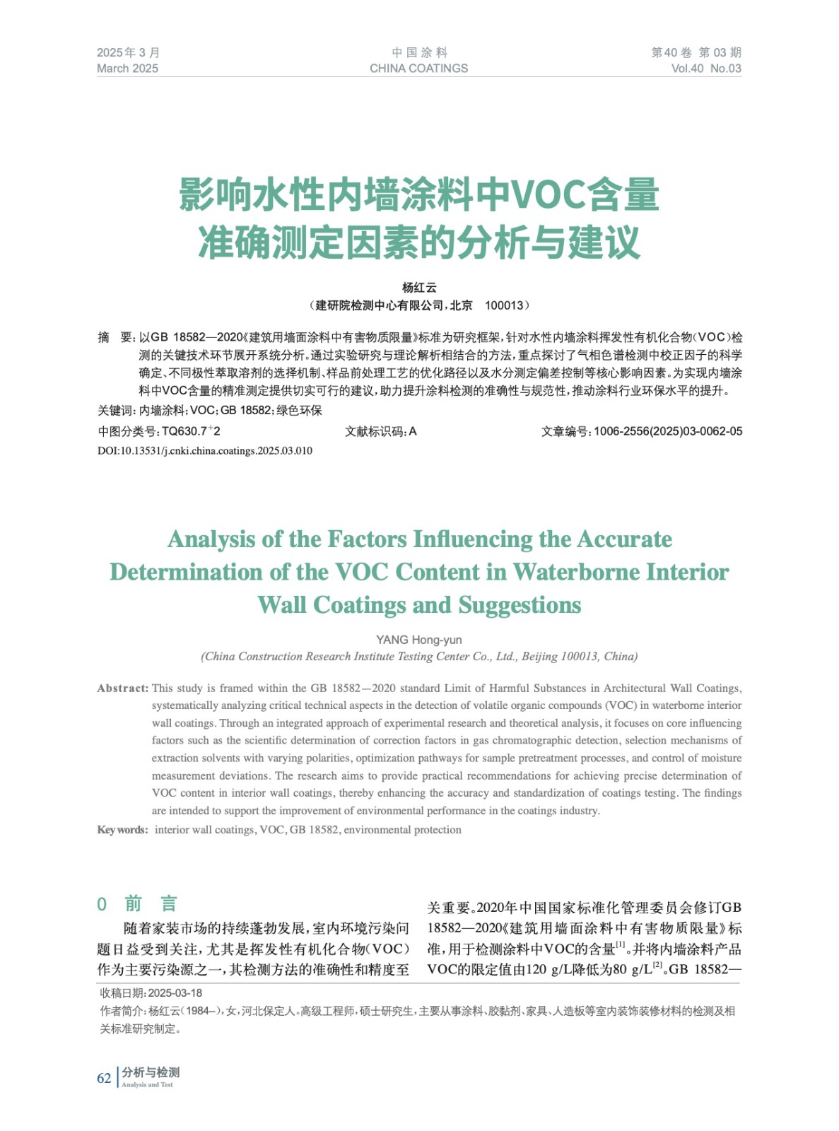 影響水性內墻涂料中VOC含量準確測定因素的分析與建議