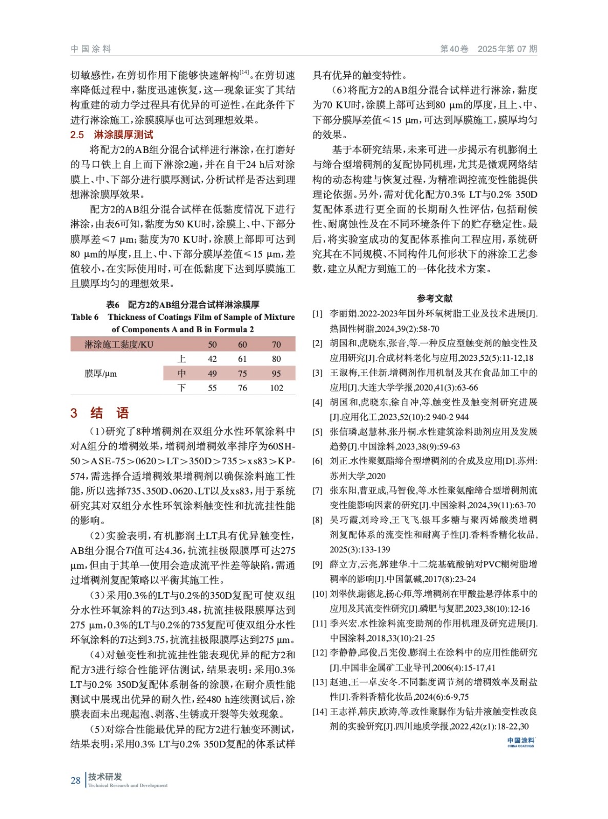 增稠劑對雙組分水性環氧涂料施工適應性的流變學改進