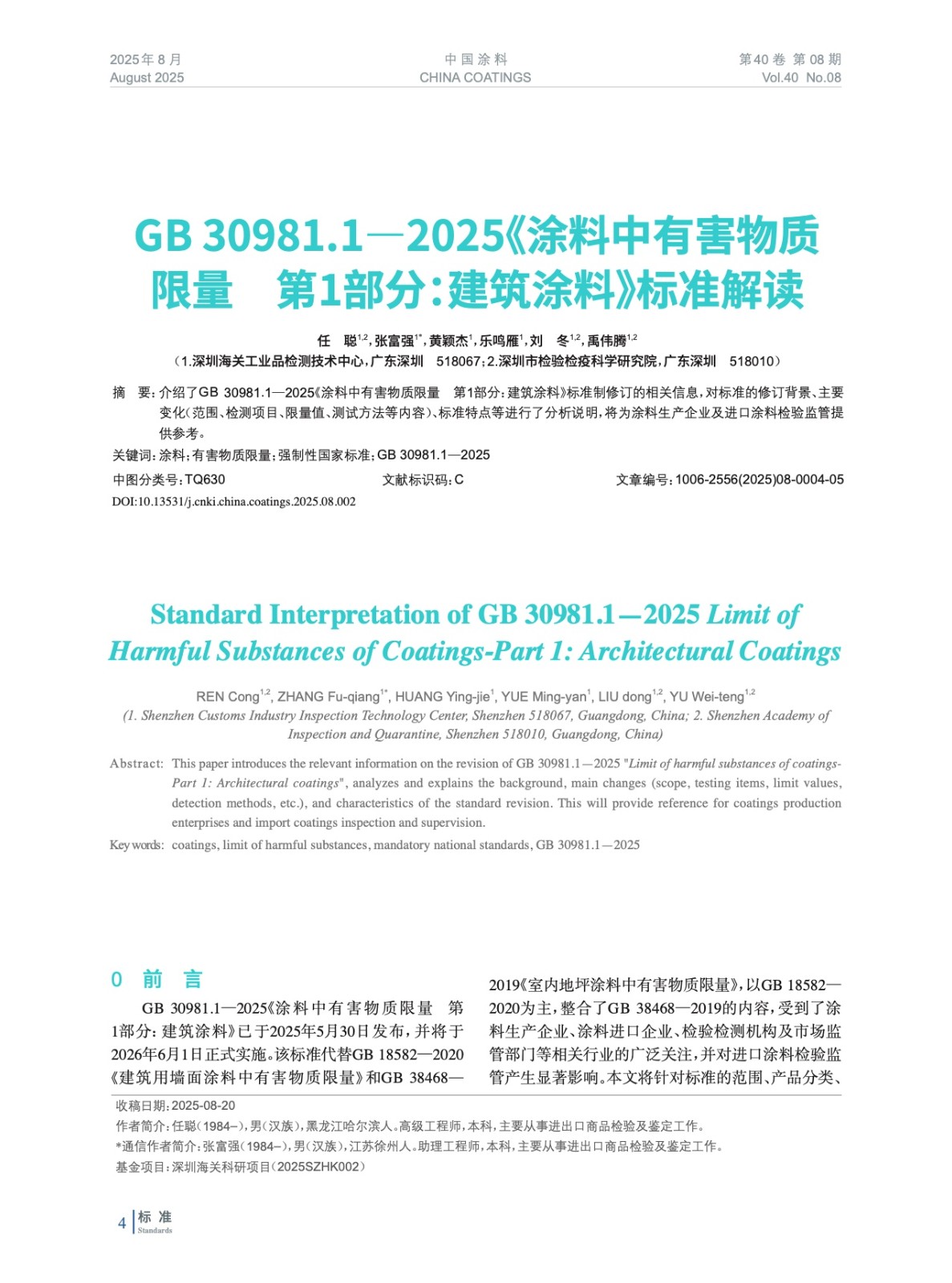 本文系作者@任 聰,張富強,黃穎杰,樂鳴雁,劉 冬,禹偉騰 授權中國涂料網發表,并經中國涂料網編輯,未經允許不得轉載,如需轉載請聯系chinacoatingnet@vip.163.com