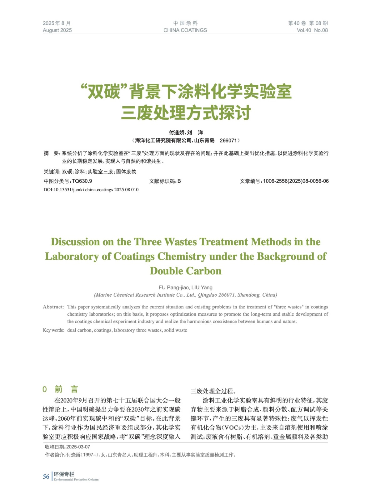 本文系作者@付逄嬌,劉 洋 授權中國涂料網發表,并經中國涂料網編輯,未經允許不得轉載,如需轉載請聯系chinacoatingnet@vip.163.com