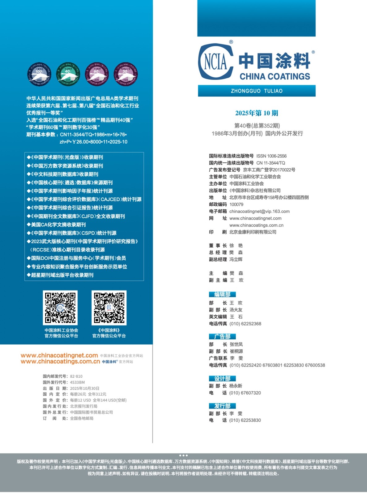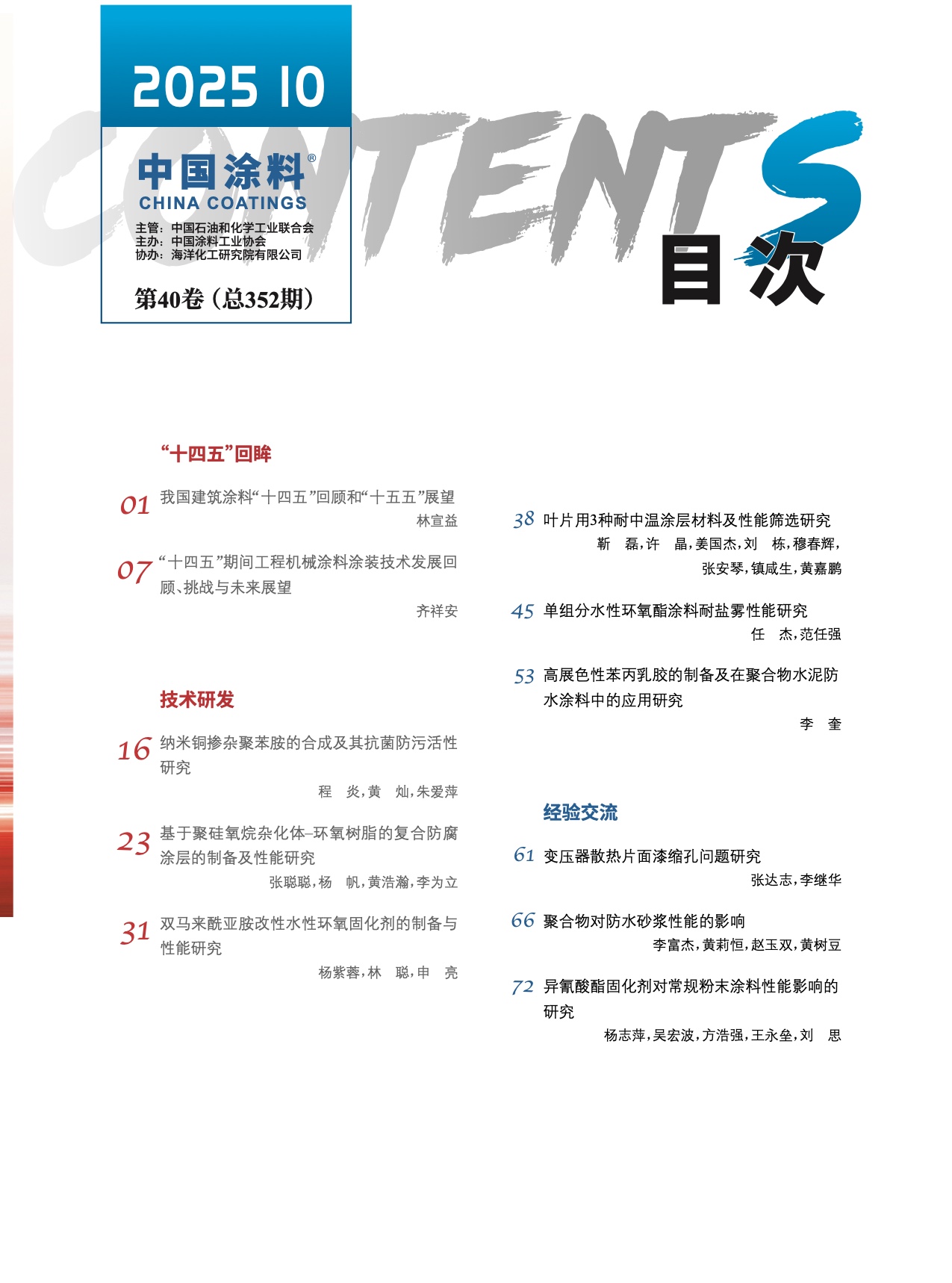 《中國涂料》2025年第10期版權及目錄