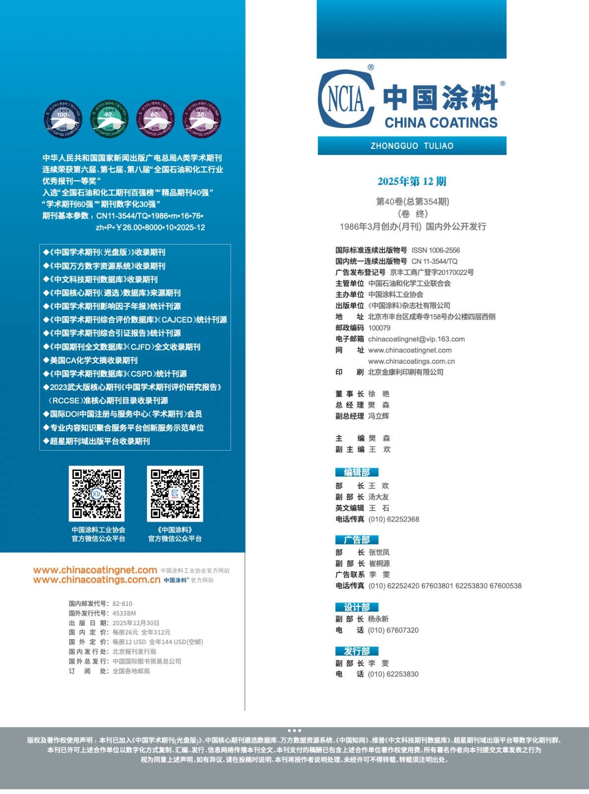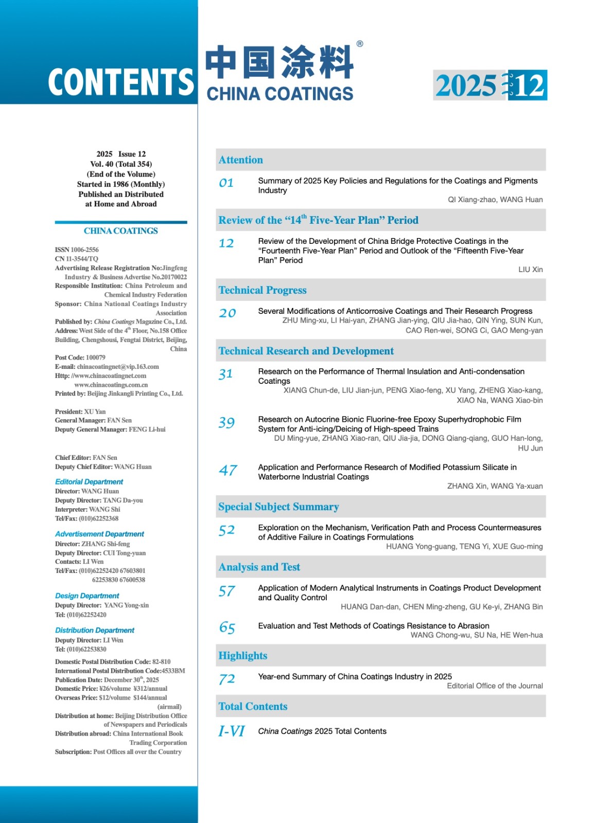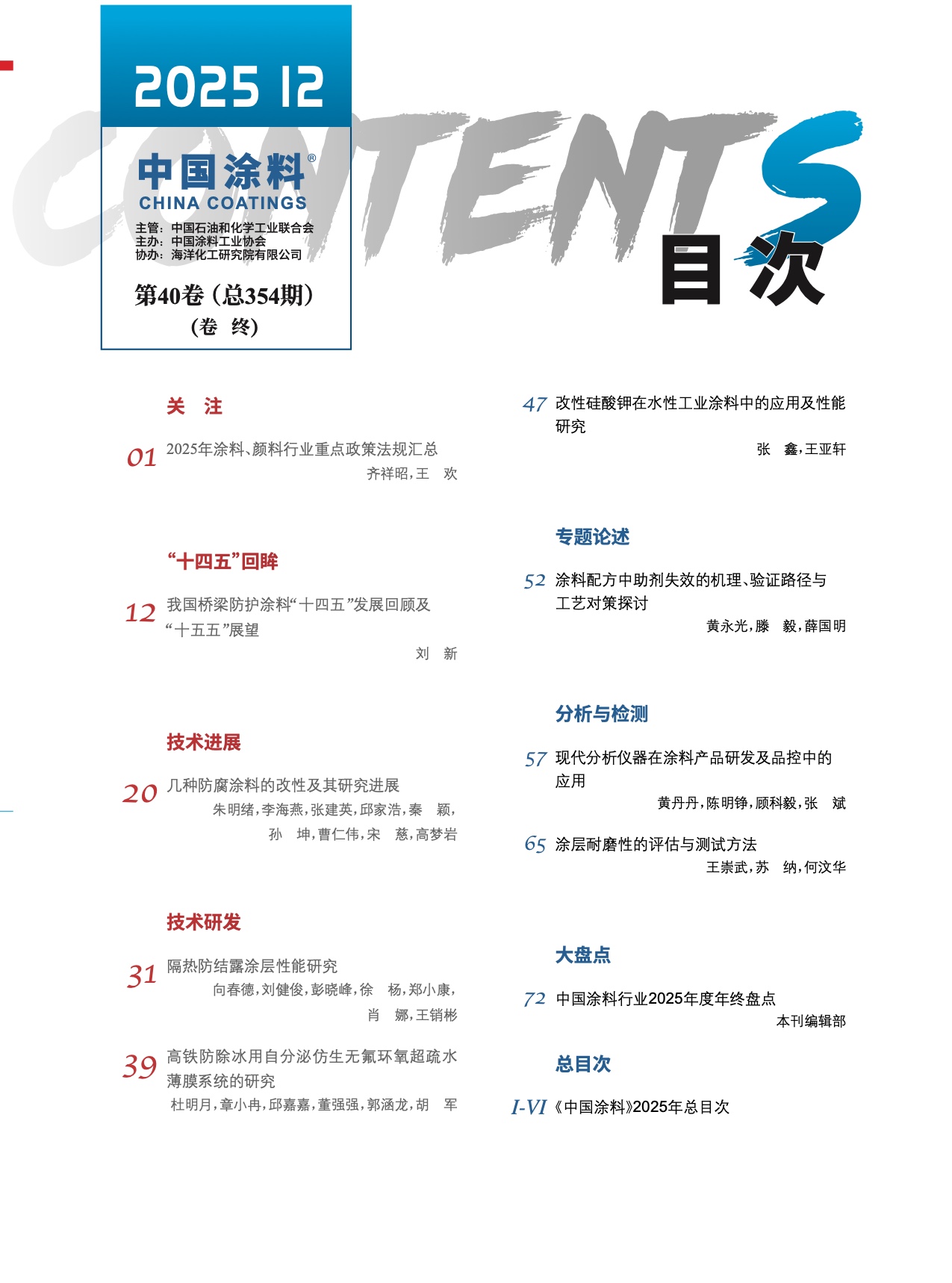 《中國涂料》2025年第12期版權及目錄