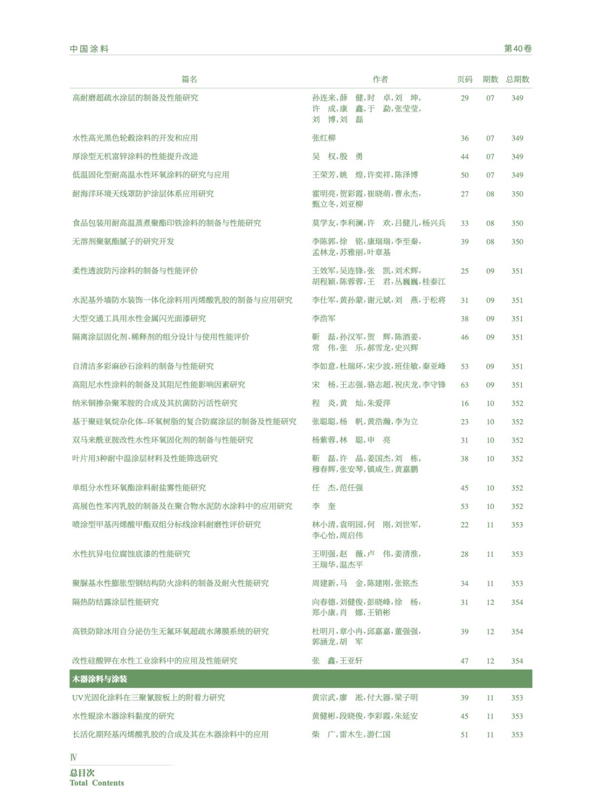 Ⅰ-Ⅵ 《中國涂料》2025年總目次