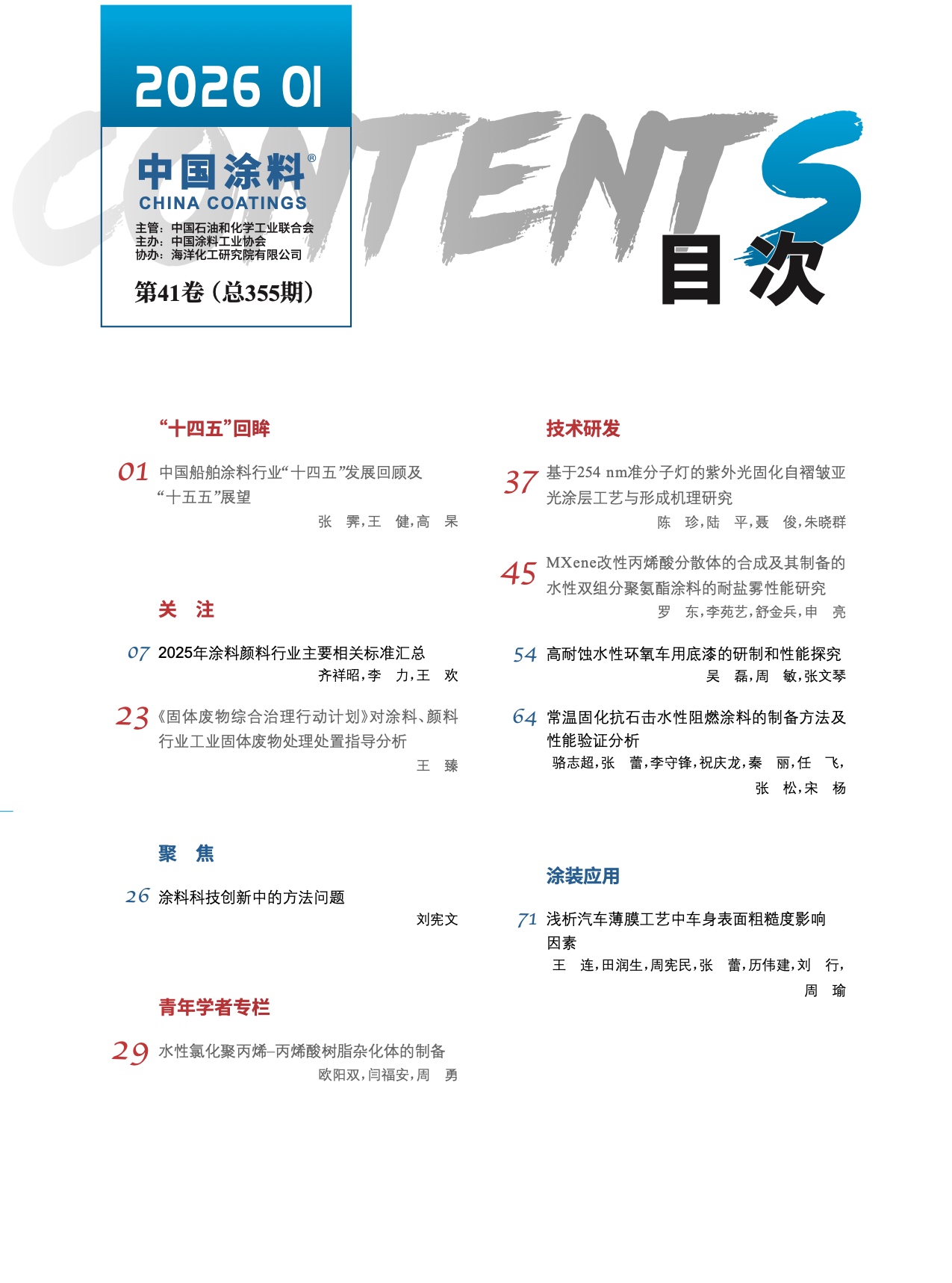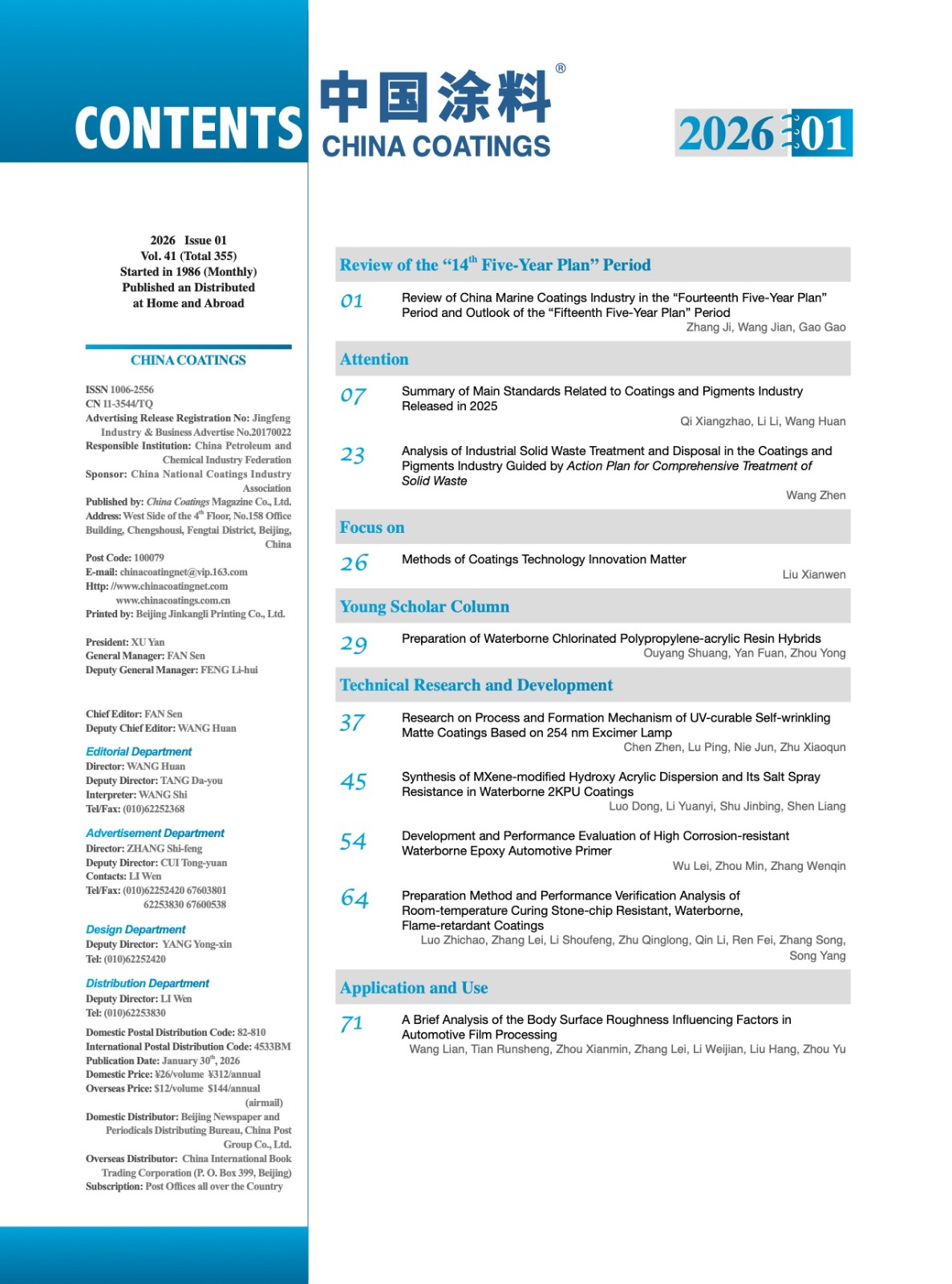 《中國(guó)涂料》2026年第01期版權(quán)及目錄