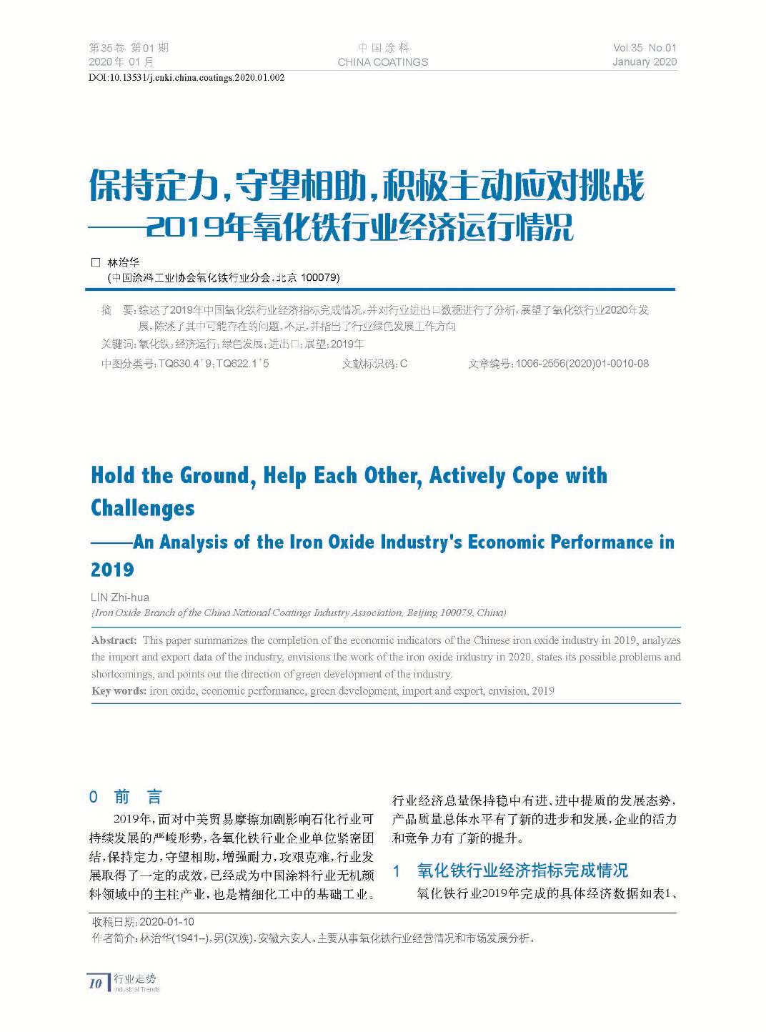 綜述了2019年中國氧化鐵行業經濟指標完成情況,并對行業進出口數據進行了分析,展望了氧化鐵行業2020年發展,陳述了其中可能存在的問題、不足,并指出了行業綠色發展工作方向。