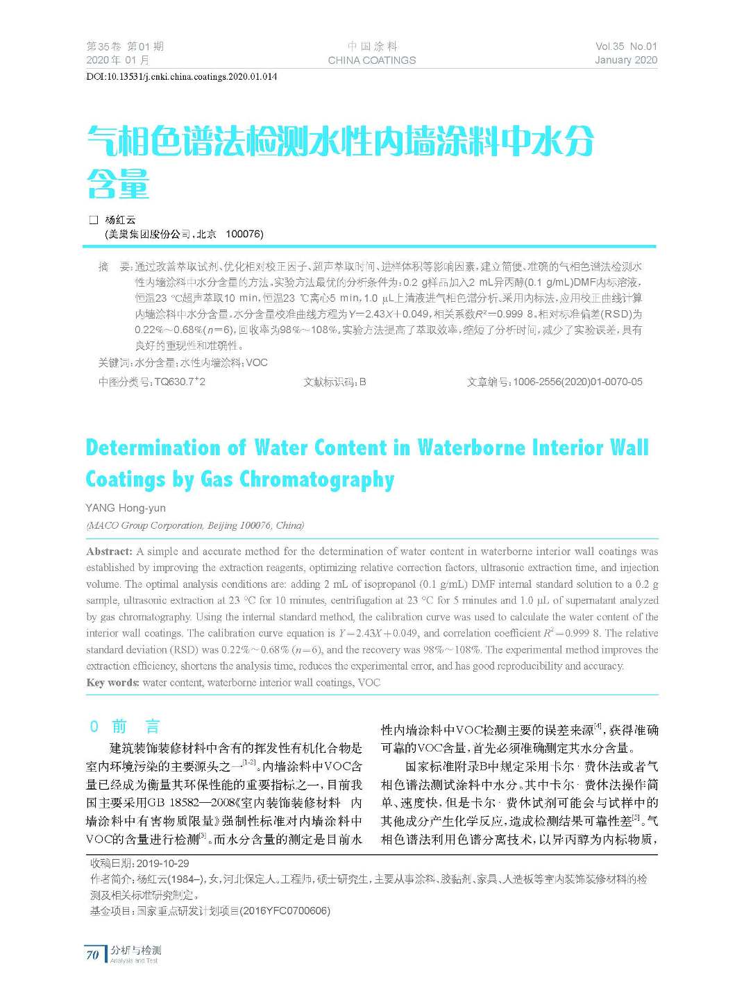氣相色譜法檢測水性內(nèi)墻涂料中水分含量