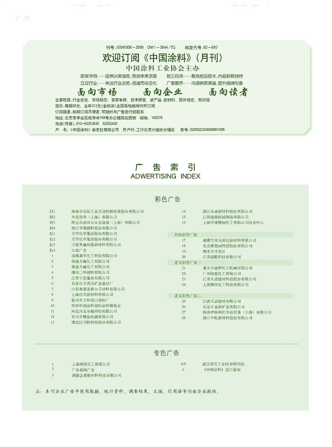 上海翔資、湖南金磐、武漢現(xiàn)代工業(yè)技術研究院、《中國涂料》征訂通知