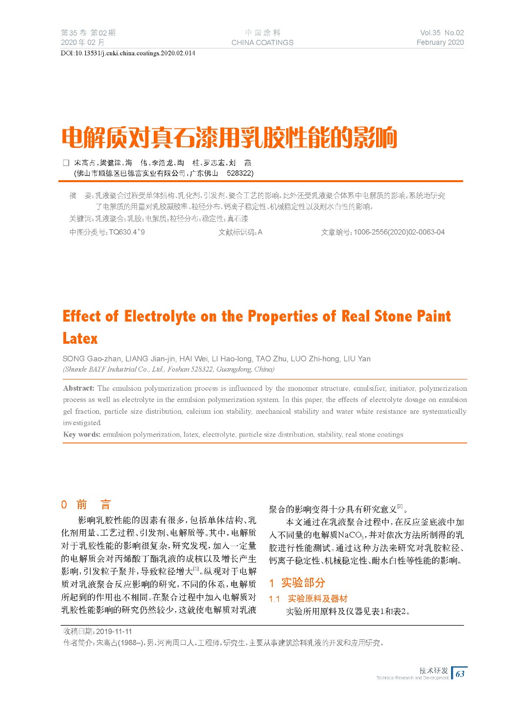 電解質(zhì)對(duì)真石漆用乳膠性能的影響