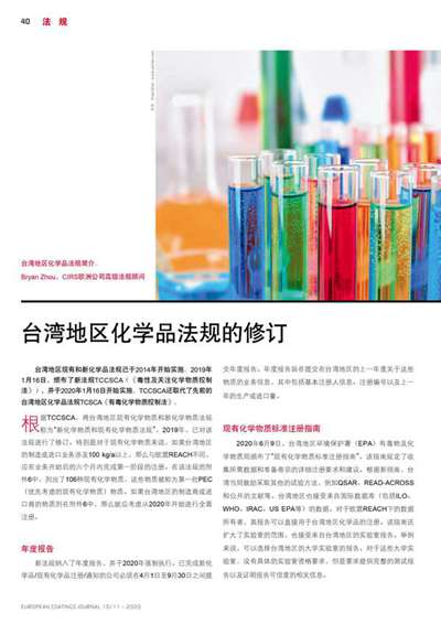 臺灣地區化學品法規的修訂