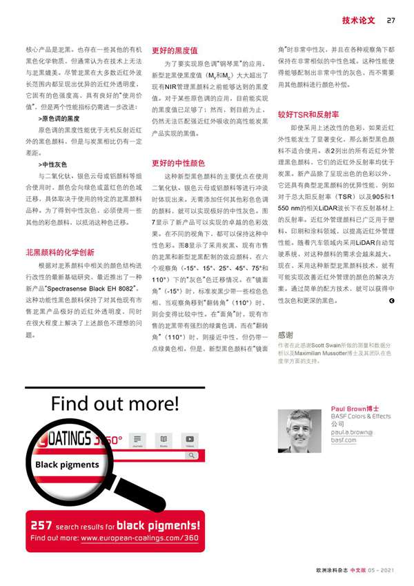 高性能NIR管理解決方案的創新型功能性黑色顏料