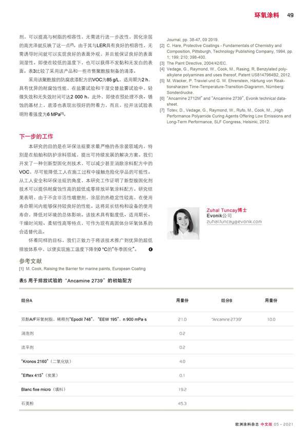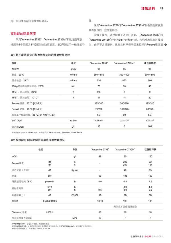 新型胺固化劑符合嚴格的VOC法規,在使用壽命期間表現出良好的性能