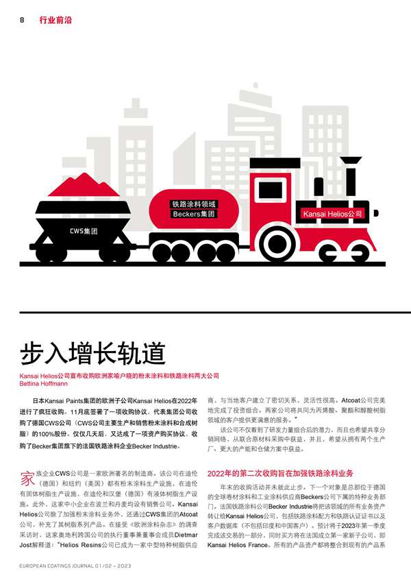 Kansai Helios將收購(gòu)歐洲家喻戶曉的粉末涂料和鐵路涂料兩大公司
