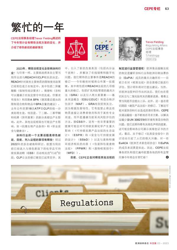 CEPE法規(guī)事務(wù)經(jīng)理Trevor Fielding
