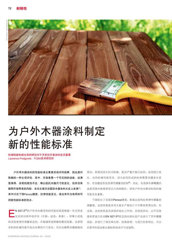 為戶外木器涂料制定新的性能標準
