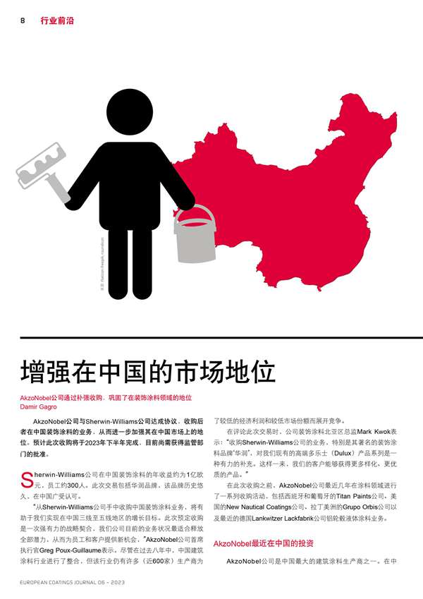 AkzoNobel公司通過補強收購,鞏固了在裝飾涂料領域的地位