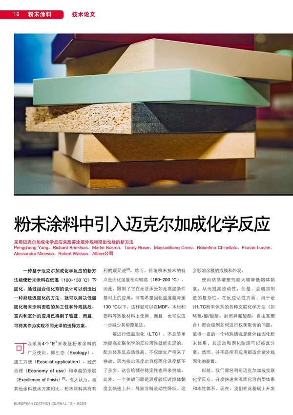 粉末涂料中引入邁克爾加成化學(xué)反應(yīng)