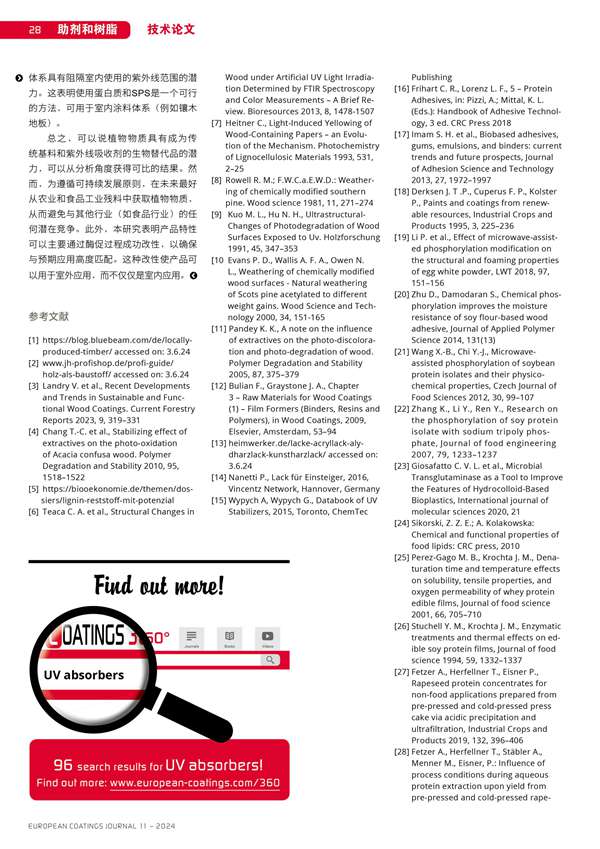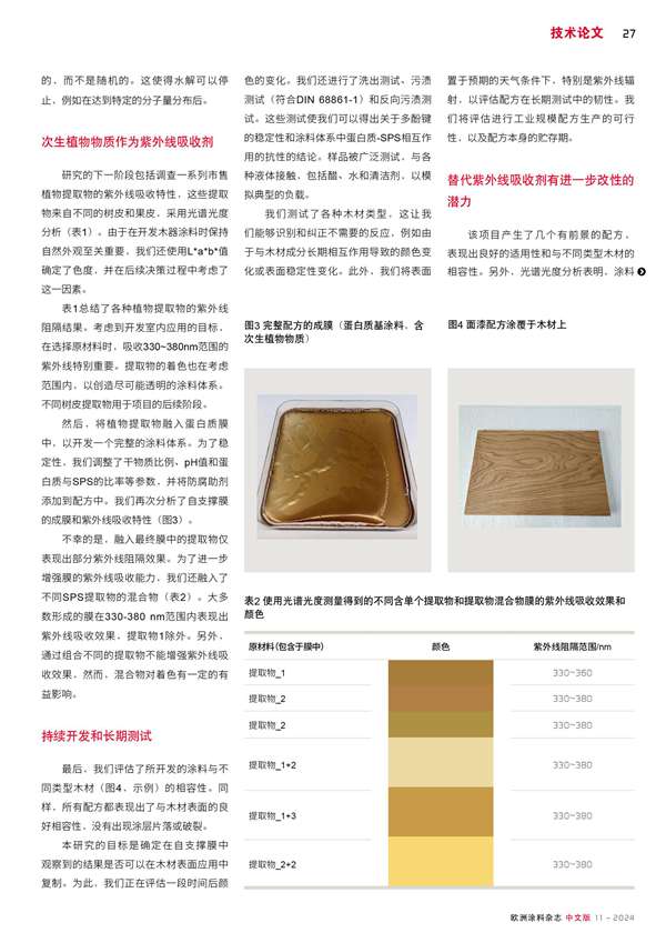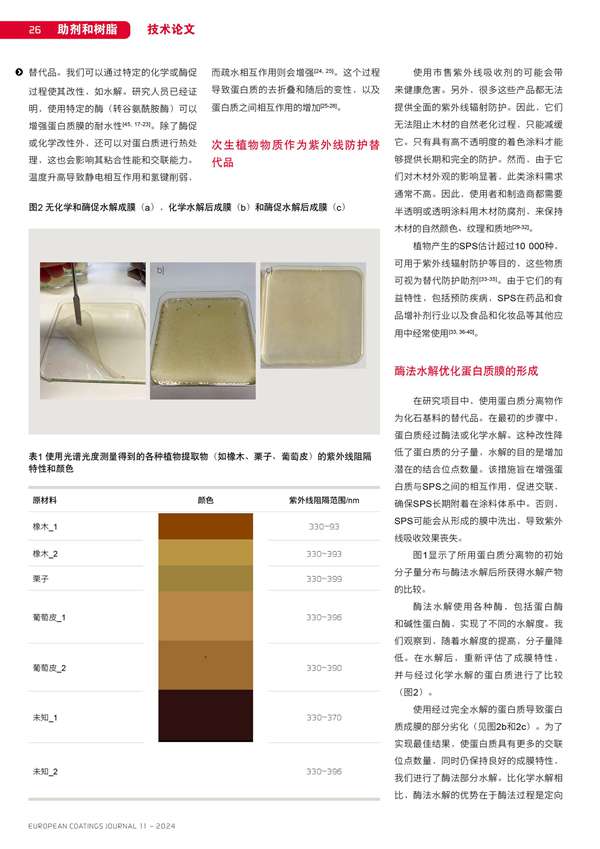 次生植物物質作為蛋白質基涂料體系中的紫外線吸收劑