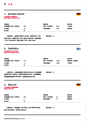 歐洲涂料雜志再次排出總部位于歐洲的前25家涂料生產商