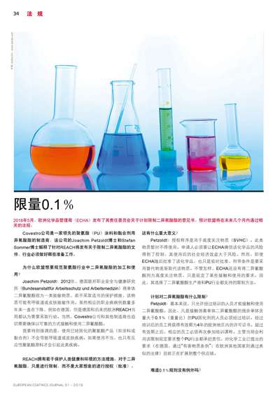 2018年5月,歐洲化學品管理局(ECHA)發布了其責任委員會關于計劃限制二異氰酸酯的意見書。預計歐盟將在未來幾個月內通過相關的法規。