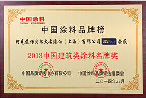 8月27日,“2013中國涂料品牌榜頒獎典禮”在沈陽隆重舉行。組委會依據科學嚴謹的評選環節,以企業的創新力、影響力、貢獻力、發展力和經營力為上榜認定標準,頒給亞士漆(上海)有限公司“中國建筑類涂料名牌 ”和“中國涂料行業商界精英”獎兩項大獎。
