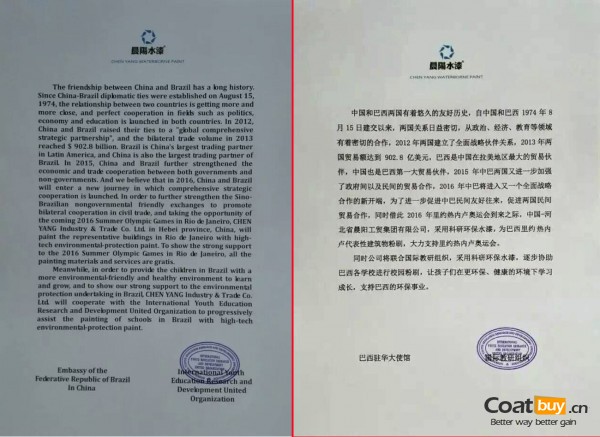 17年來,晨陽水漆始終致力于水漆的生產、研發和推廣,建有水性涂料院士工作站,攜手中科院打造水性涂裝納米材料實驗室,參與國家863計劃“風電葉片防護涂料”項目,2008年成奧運粉刷工程材料供應商,2015年大閱兵期間成天安門城樓粉刷指定用漆,并將聯合國際教研組織涂刷里約熱內盧代表性建筑。