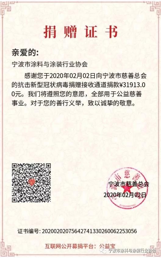 2、協會第一批捐贈款101913元,于2月1日晚通過寧波市慈善總會定向捐贈寧波市華美醫院。