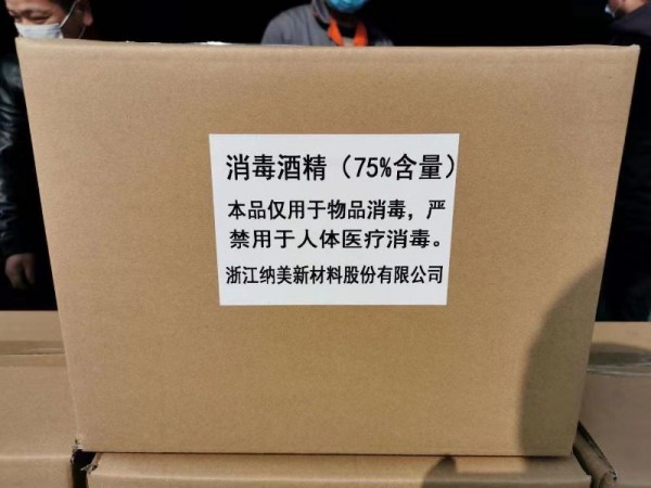 抗擊疫情期間,浙江納美新材料股份公司黨支部組織安吉黨員將公司實驗室庫存的酒精稀釋成75%的消毒酒精,積極支援機關單位消毒抗疫。
