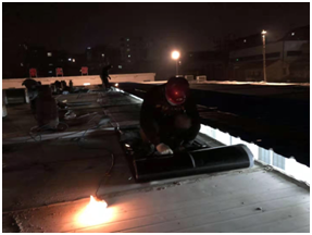 荊門東方雨虹在短短幾個小時內將施工人員、防水材料、施工設備協調齊全到位并火速進入施工現場,連夜奮戰,僅用一個晚上,保質保量完成施工任務。