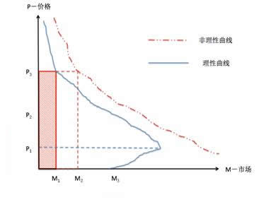 其次,根據(jù)圖2顯示:如果產(chǎn)品價格定在P3,那么銷售能夠達(dá)到的理想銷量是陰影的部分如果,輔以一定的市場營銷,銷量或許可以擴(kuò)展到虛線所示的面積。但是如果過渡營銷或者營銷不當(dāng)?shù)脑挘Y(jié)果會適得其反(如圖3所示)。這種案例比比皆是,大家可以對號入座。