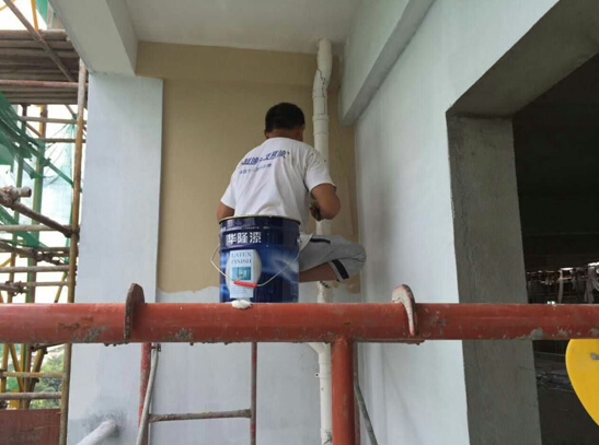 圖:華隆涂料施工人員在現(xiàn)場(chǎng)施工