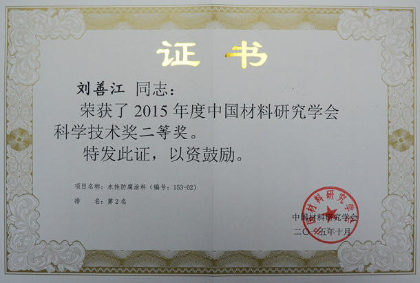 近日,由晨陽水漆研發(fā)的“水性防腐涂料”項目(編號:153-02)榮獲2015年度中國材料研究學(xué)會科學(xué)技術(shù)獎二等獎。該項目有效解決了長期以來中國工業(yè)防腐用水性涂料依靠進口的現(xiàn)狀,以及水性涂料耐鹽霧性差、附著力差的關(guān)鍵技術(shù)問題。