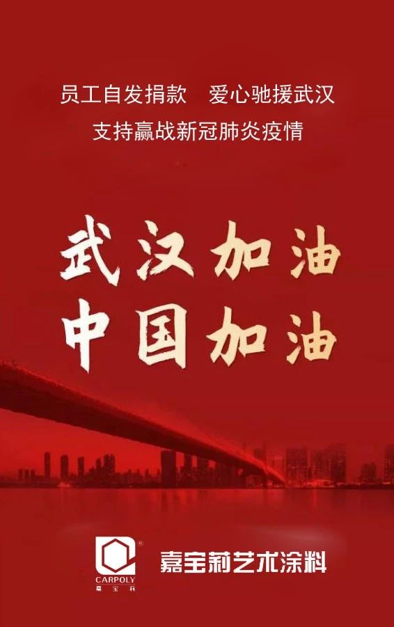 新型冠狀病毒肺炎疫情牽動著全國人民的心。隨著疫情的不斷蔓延,為助力武漢人民共渡難關,助力全國人民打贏這場來勢洶洶的疫情戰(zhàn),嘉寶莉藝術涂料員工也積極行動了起來。由于疫情原因,公司尚未開工,大家便在微信群中自發(fā)組織捐款。