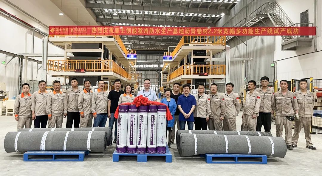 亞士創(chuàng)能滁州防水工廠瀝青卷材多功能產(chǎn)線試機成功現(xiàn)場