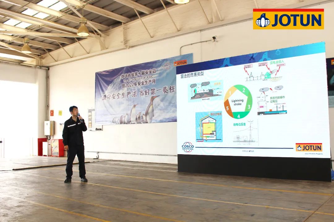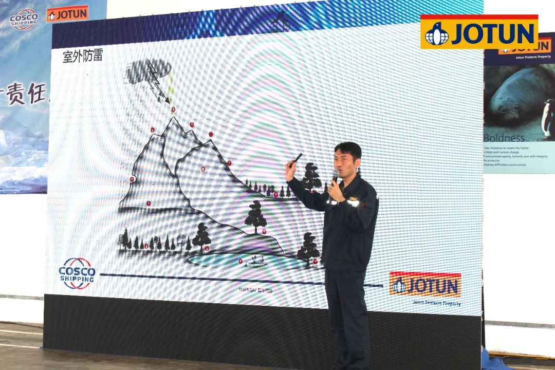 應急演練過后,HSE&QA部經理鄧國棟為大家進行了“夏季四防”主題培訓,講解夏季常見的洪水、雷電、中暑、火災這四種突發事件的預防和應對措施。
