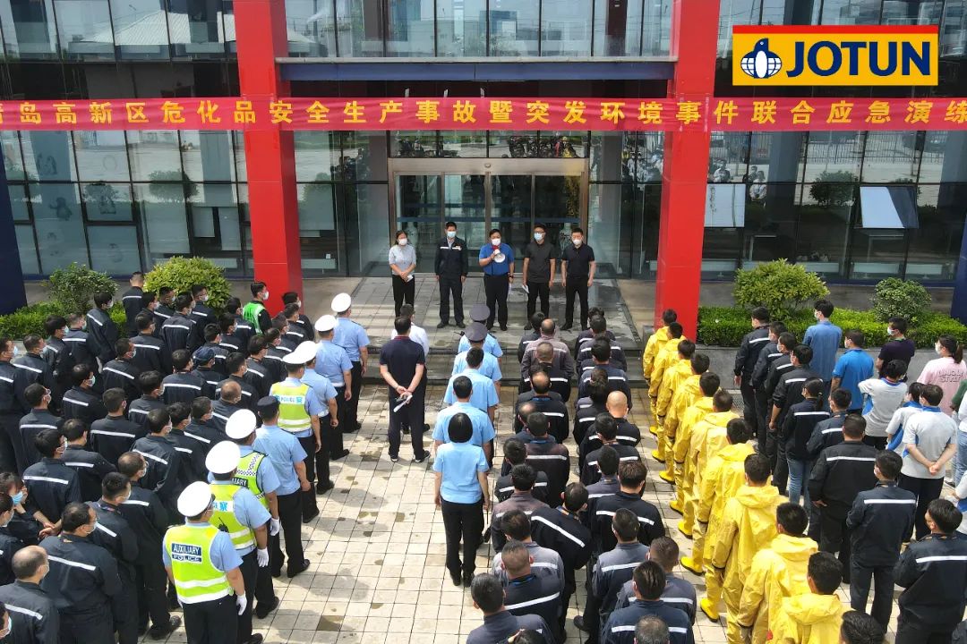 之后,中遠佐敦進行了綜合應急演練。此次演練不同以往,是公司聯合青島市高新區政府共同實施的生產安全事故應急預案暨突發環境事件應急演練。通過演練,有效提升了企業與政府的默契程度,強化了公司與當地應急、生態環境、消防、醫療、公安等各部門的配合以及應對突發情況時的相互協作能力,從而保證安全、迅速、有效地處置危險化學品突發事故。