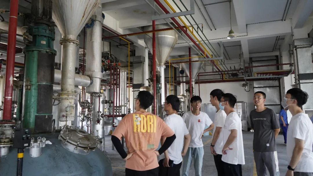 生產(chǎn)部部長(zhǎng)李丕渡帶領(lǐng)浙江工業(yè)大學(xué)化工學(xué)院全體師生參觀數(shù)智化生產(chǎn)車間。