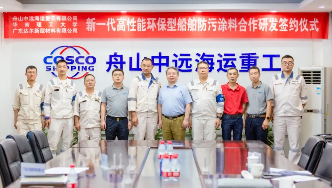 為積極踐行船舶全生命周期管理理念,探索環(huán)保、高性能、長效的防腐材料,助力企業(yè)高質(zhì)量發(fā)展,7月29日,舟山中遠(yuǎn)海運(yùn)重工與華南理工大學(xué)、廣東達(dá)爾新型材料有限公司簽署“新一代高性能環(huán)保型船舶防污涂料合作研發(fā)協(xié)議”。