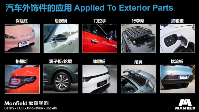 萬(wàn)輝汽車(chē)內(nèi)外飾涂料被廣泛應(yīng)用于納米BOX的前后保險(xiǎn)杠、尾翼、行李架和裝飾條等部件,并為之提供了完美的顏色匹配、高端涂層質(zhì)感與優(yōu)異的涂料性能。