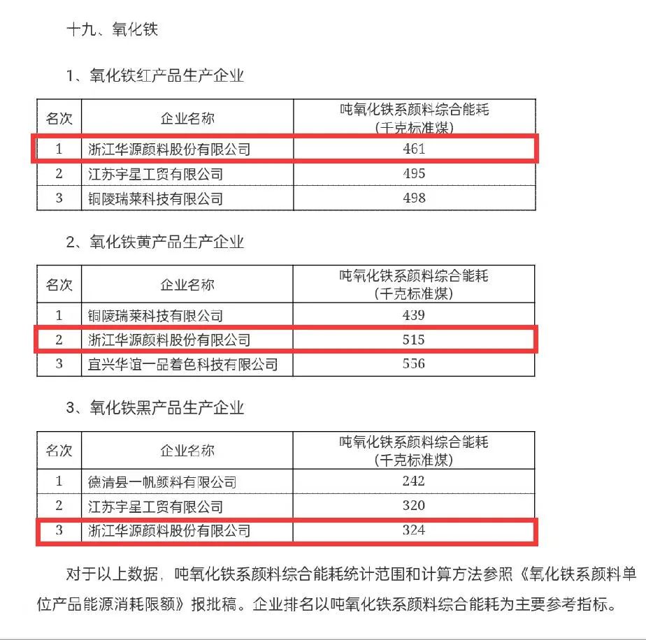 作為氧化鐵系顏料行業能效“領跑者”標桿企業,2021年度華源顏料氧化鐵紅、氧化鐵黃、氧化鐵黑綜合能耗主要參考指標均名列前三,其中氧化鐵紅更是在同行中首屈一指。