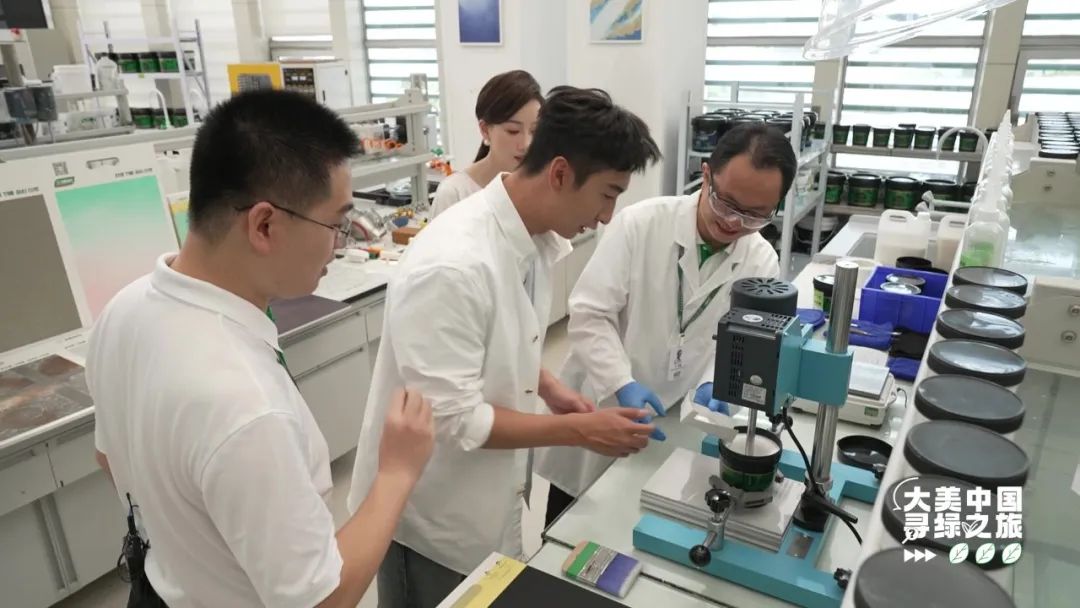 除了園區的生態之美,三棵樹的綠色硬實力也不容小覷。武大靖一邊和大家一起尋綠,一邊還開發了新技能,如愿當了一回“粉刷匠”。