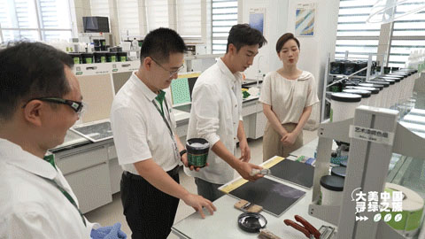在藝術涂料配方實驗室中,武大靖和常婷也在藝術涂料工程師未友國的指導下,體驗了藝術涂料的研發調試過程,獲得了別具風情的藝術涂料。三棵樹研發的仿天然石材、敦煌彩壁、夢幻威尼斯等珠光藝術涂料,就是在此調配誕生,因其極具質感和肌理效果的時尚炫彩被諸多年輕人群所青睞。