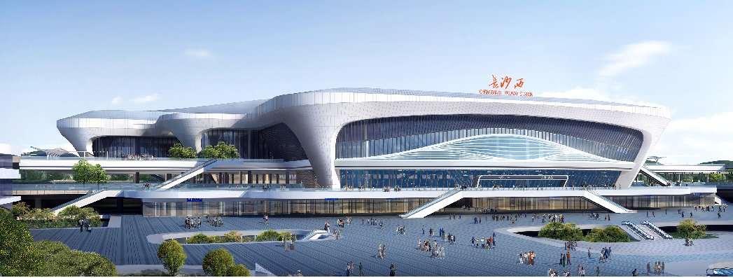 長沙高鐵西站位于望城區,是在既有長沙西站站房的基礎上拆除重建,建筑規模逾10萬平方米,站場規模12臺22線,其中城際場(長株潭、長岳、長潭西)6臺12線,渝長廈場6臺10線。