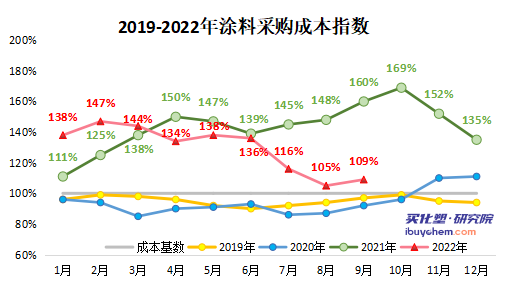 伴隨國際經(jīng)濟(jì)形勢和地緣沖突等影響,疊加新冠疫情和風(fēng)控影響,在涂料下游需求疲軟的情況,涂料上游原材料的行情波動幅度陡然增加,單月漲跌幅超過20%,這對于涂料企業(yè)的采購計劃,產(chǎn)生了非常不利的影響。原材料價格的變化雖波動明顯但均值較高,涂料成品變化幅度不大但均值較低,成品價格的上漲幅度遠(yuǎn)不及原材料。如果從價格傳導(dǎo)來看,國內(nèi)涂料企業(yè)承擔(dān)較為嚴(yán)峻的成本壓力。如何建立起穩(wěn)健、有效的采購策略和采購計劃,來抵消原材料波動帶來的被動影響,將是目前涂料企業(yè)保證企業(yè)利潤的工作之一。