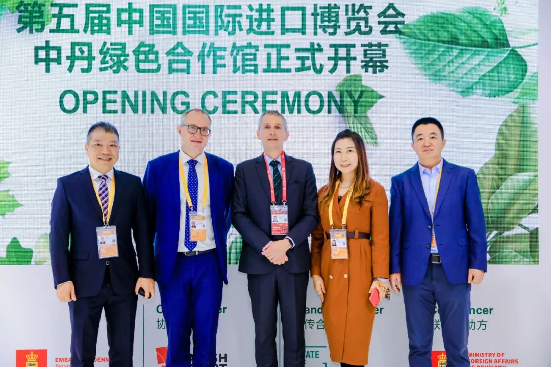 11月5日,第五屆中國國際進口博覽會盛大開幕。11月6日,中丹綠色合作館在進博會技術與裝備展區正式開幕。中丹綠色合作館是中丹兩國在綠色發展與清潔能源方面合作的里程碑。它體現了兩國作為推動區域可持續發展的倡導者,在綠色發展研究與創新合作、應對氣候變化方面的決心。