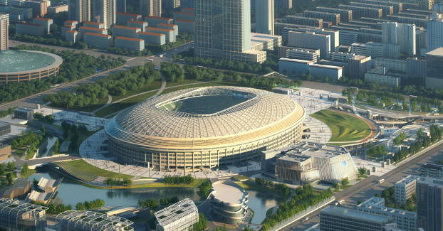青島青春足球場是山東省首座5萬座足球場,包括1座5萬座專業足球場、2塊訓練基地、1座多功能館、1座游泳訓練館。足球場的設計靈感由海而來,取意“躍動海浪”。外立面肌理由上下穿梭、飄逸流動的轉折曲線勾勒,猶如海風輕撫過后的層層海浪,韻動的形態呼應了青島優美的自然海岸風光,預計于2022年底竣工。