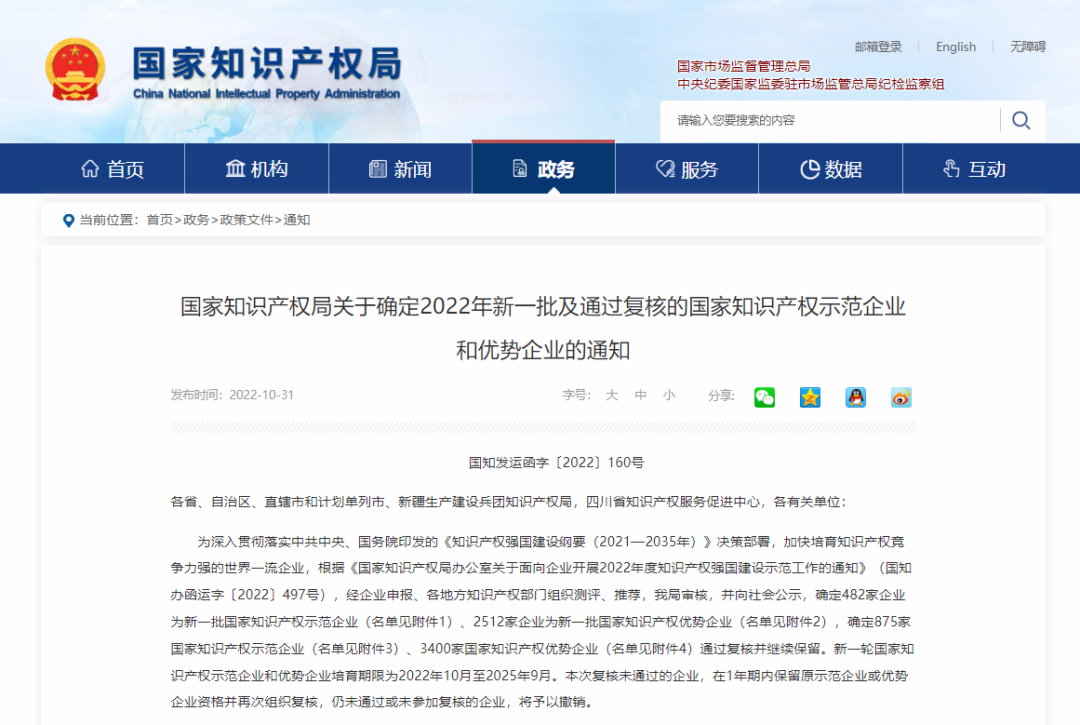 近日,國家知識產權局確定了2022年新一批及通過復核的國家知識產權示范企業和優勢企業名單,信和憑借在知識產權創造、運用、管理及保護等方面的多重優勢,通過“國家知識產權優勢企業”復核認定。
